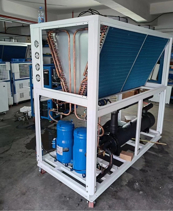Le système de réfrigération est l'élément central d'unrefroidisseur d'eau industriel, et ses performances affectent directement l'effet de refroidissement du refroidisseur. Il est crucial de vérifier régulièrement la pression du système de réfrigération. Généralement, les pressions haute et basse du refroidisseur doivent être vérifiées quotidiennement et comparées aux paramètres de fonctionnement normaux de l'équipement. Si une pression anormale est détectée, la cause doit être identifiée et traitée rapidement. Par exemple, une pression trop élevée peut être due à une mauvaise dissipation thermique du condenseur ou à un excès de réfrigérant ; une pression excessivement basse peut être causée par une fuite de réfrigérant ou un détendeur défectueux.